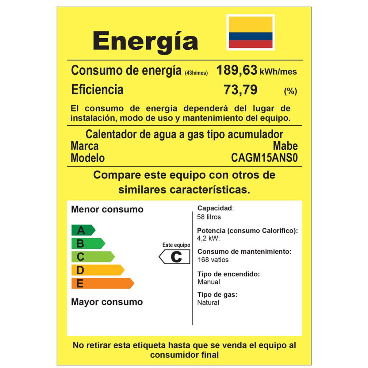 CALENTADOR DE ACUMULACIóN DE 15 GALONES GRIS MABE